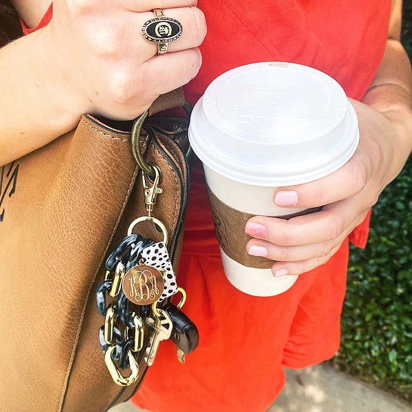 Featuring gold and black-marbled rings, this key chain is not only great for yourself — but for any other friend or family member who struggles with finding their keys. The monogram makes this a personal, fun, and thoughtful gift for anyone on your list and ensures that there will be no more lost or dropped keys in the future.