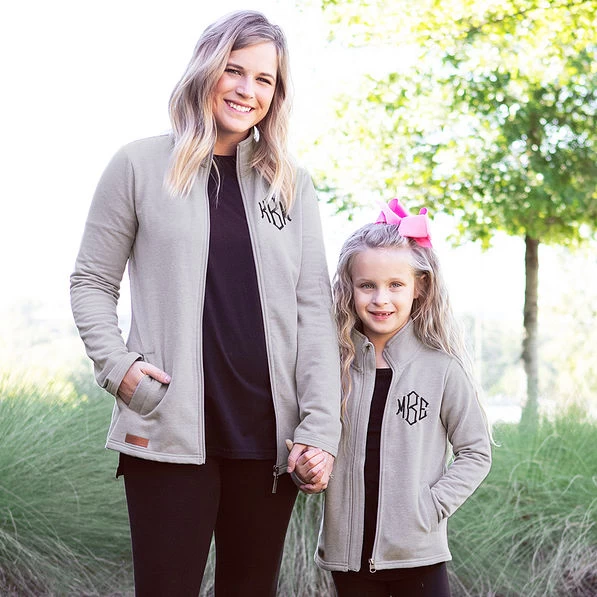 This monogrammed kids’, infant, and toddler jacket is ultra-comfortable with its relaxed style. A super-soft inner lining will keep them cozy warm. Not too heavy and not too light, this kids’ jacket is just right. Love this jacket? Great news! It’s also available in adult sizes, so you can twin with your mini! Don’t miss our other monogrammed goodies for your kids (and for yourself) at Marleylilly. Shop clothing, shoes, and accessories for toddlers, infants, and youth.