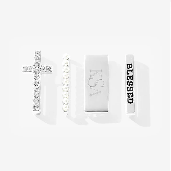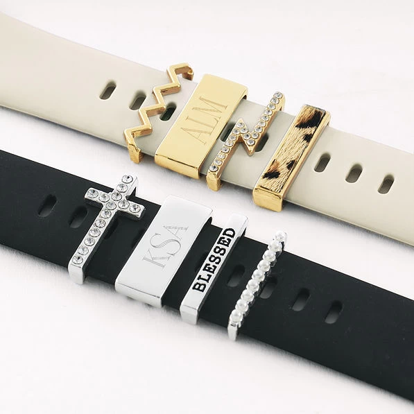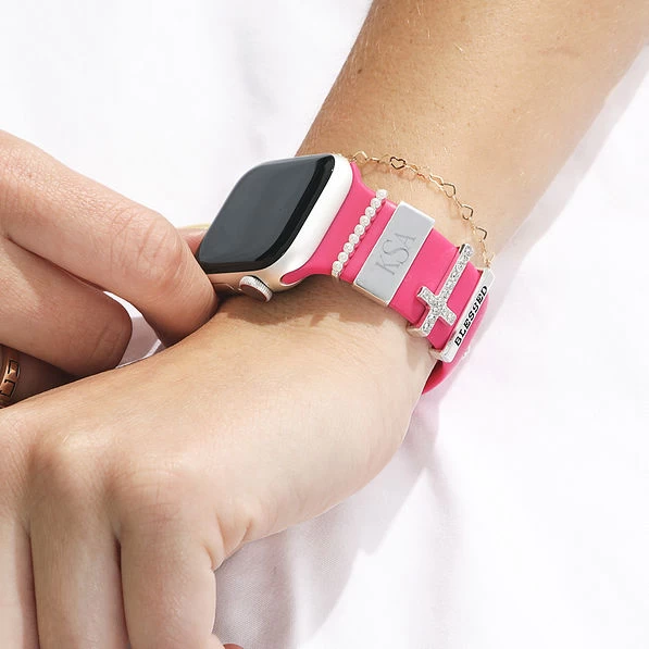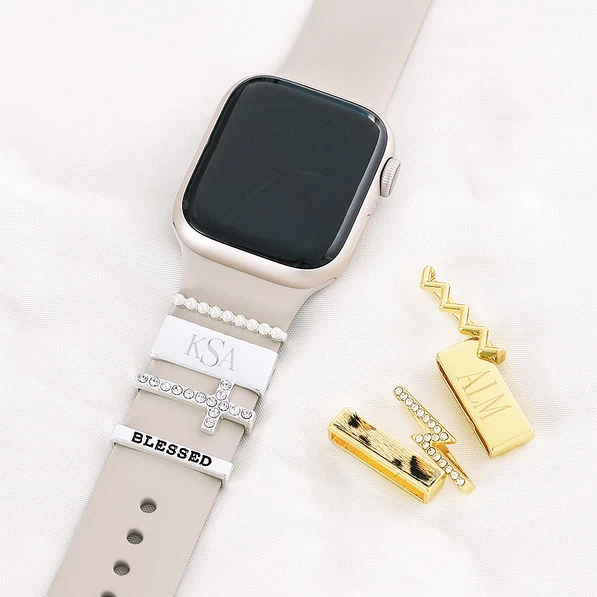 Dress up your smart watch with these elegant Personalized Smart Watch Charm Sets! With your monogram engraved on a rectangular disc, these decorative ring loops bring a little bling to your silicone straps. Available in gold and silver, these charm sets are perfect for adding some flare to any everyday outfit or for a night out on the town! These monogrammed charms would look great paired with a monogrammed necklace and earrings!